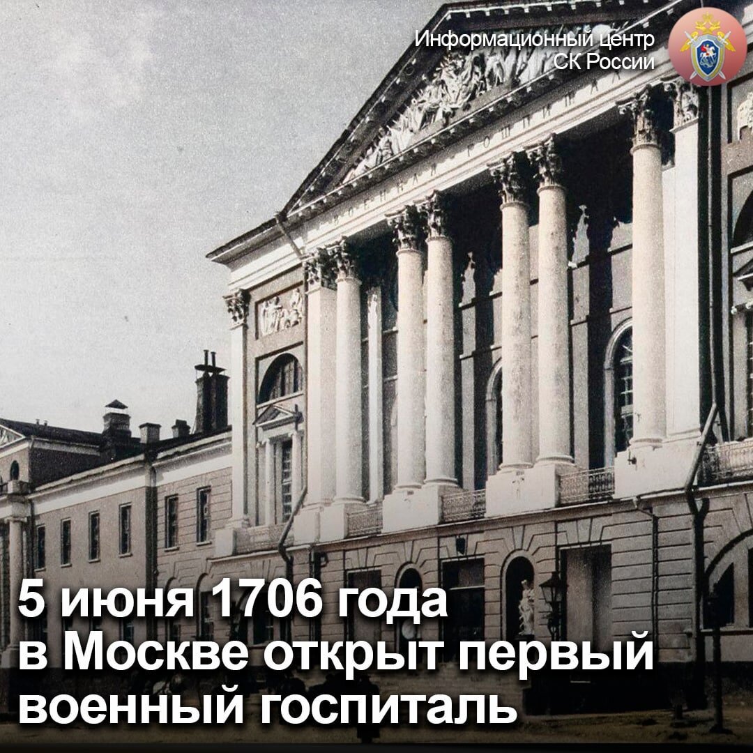 5 июня 1706 года в Москве основан первый госпиталь - ныне Главный военный клинический госпиталь имени Н.Н. Бурденко Главный военный клинический госпиталь имени академика Н.Н. Бурденко является первым государственным лечебным учреждением России. 👉 К началу XVIII века в России все настоятельнее ощущалась потребность в подготовке отечественных лекарей, которые владели бы всеми достижениями современной медицины. Наряду с другими преобразованиями государственного и общественного устройства России перемены приходят и в российское военно-медицинское дело: Петр I приступает к созданию государственной системы медицинского обеспечения населения и армии, а также медицинского образования. 📌 Московский госпиталь (ныне - Главный военный клинический госпиталь имени академика Н.Н. Бурденко) был основан 5 июня 1706 года (по новому стилю) в Лефортове по указу Петра Первого: «...построить за рекою Яузою противу Немецкой слободы в пристойном месте гошпиталь для лечения болящих людей…». ✅ Первых паци