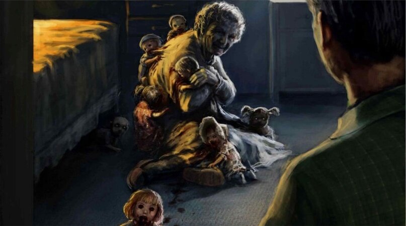 Мужчина наблюдал за тем как старушка, обнимая куклу словно ребенка прошла в холл. На диване и в креслах сидели другие куклы, все они смотрели в сторону входной двери.