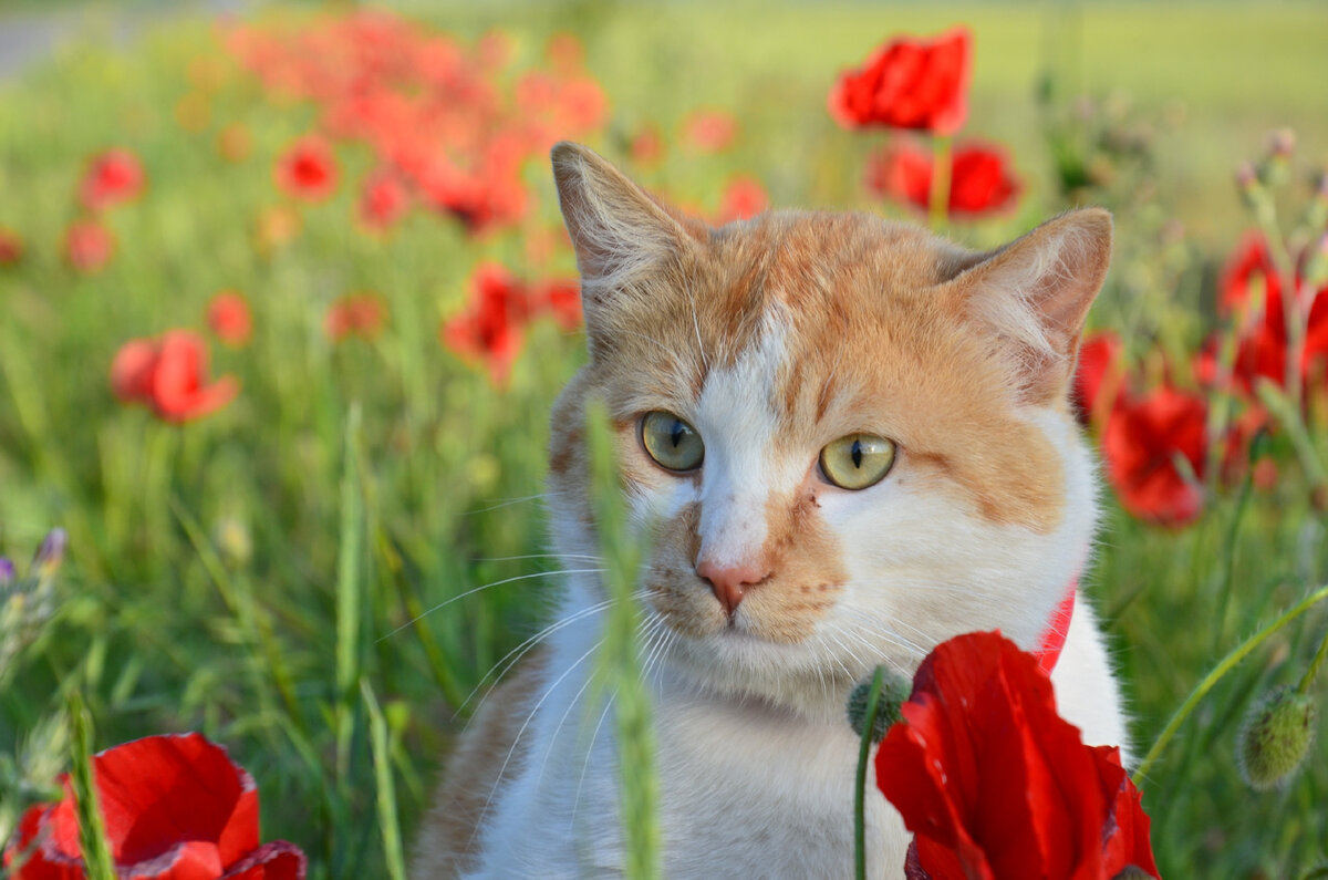Жаль, я не Моне: писал бы картины с маками. Смотрите, какая натура! Природа в этом году особенно постаралась. Ярко-красные поля даже коту глаз радуют. Когда я был малышом, то держался от огненных полей подальше – за усы боялся. Потом разнюхал, что они не горячие, а красивые! Теперь каждый май и июнь ими любуюсь. Красные поля, конечно, сейчас самые яркие, но только после меня, разумеется. Мой рыжий тоже огненный! Конец мая – начало июня в Крыму красочное время: цветочные пейзажи на любой вкус. Вот дельфиниумный, например. Айвазовскому бы не понравилось – моря нет, а я в восторге! Дельфиниум – сорняк, но это самый красивый сорняк из всех известных сорняков! У него своя легенда. Боги превратили влюбленного юношу в дельфина. Он подплыл к берегу, оставил у ног ждавшей его девушки фиолетовый цветок и скрылся в пучине. А это льняное поле! В ясную безоблачную погоду цветочный ковер сливается с голубым небом. Ученые доказали: цветочные пейзажи никогда не надоедают. Любуйтесь, любуйтесь и любуйт