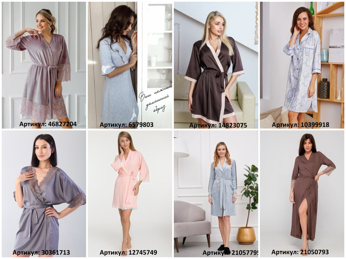 1. Артикул: 46827204 (ссылка). Изысканный женский халат премиум качества с кружевом в благородном цвете. Домашний халат на запах очень комфортен в носке, мягкий и приятный к телу. Отделка кружевом по рукавам и подолу добавит женственности и воздушности в ваш домашний образ.