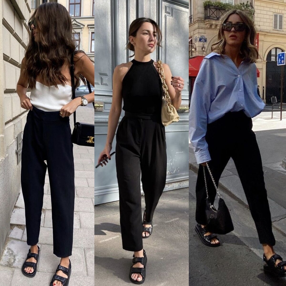 Универсальная летняя обувь, которую девушки успешно переняли из мужского гардероба, станет дополнением к разнообразным образам, нужно лишь научиться правильно их носить. Черный низ Самое неопасное сочетание массивных сандалий - с черными брюками/шортами/юбками. Важен - свободный фасон, скинни не подойдут. Белый низ Идеально для нежных светлых образов, один момент: необходимо добавить аксессуар — сумку, ремень, очки — или, например, топ в цвет обуви, чтобы она сильно не выделялась. Джинсы/кожаные брюки Лето в Краснодаре, конечно, не разрешит дак модничать в +50 в тени, но для умеренного климата и вечерних прогулов — в самый раз. Если посмотреть на все образы, то можно заметить, что простота — залог стиля. Выбирайте однотонные вещи в классических оттенках, свободного фасона и не забудьте про аккуратный педикюр. Спасибо за внимание ❤️ Ставьте лайки и подписывайтесь на канал✨