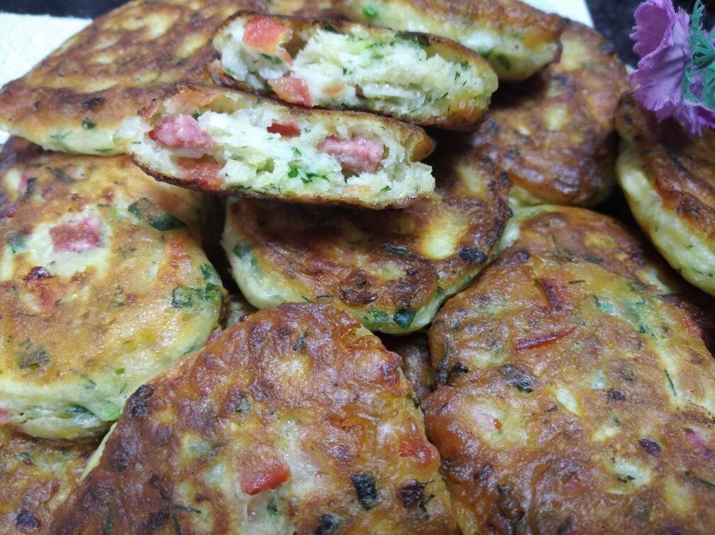 Такие оладушки отличная альтернатива классической пицце: с ними меньше хлопот, а начинку можно подбирать по своему вкусу или что есть в холодильнике - и оладьи всегда будут с новым вкусом! Готовьте на здоровье, друзья, и приятного вам аппетита!