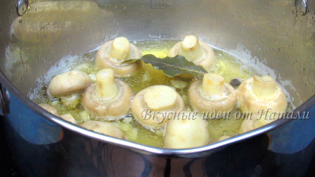 Рецептов приготовления картофельного салата достаточно много и ранее я уже делилась одним из них, ссылку оставлю внизу. А сегодня хочу поделиться ещё одним удачным рецептом картофельного салата. Получается очень вкусно. Попробуйте! Как приготовить (ниже перечень ингредиентов, фото и видео рецепт) В первую очередь отвариваем картофель в мундире и маринуем грибочки. Обычно я эти два процесса делаю вечером, чтобы на след. день не тратить много времени на приготовление салата. Для этого салата можно конечно использовать и покупные маринованные грибы, но я рекомендую замариновать их самостоятельно - это очень просто, быстро, вкусно и недорого. Как отварить картофель в мундире описывать не буду 😉, а вот как замариновать грибы коротко напишу. Подробный рецепт найдете здесь Маринованные шампиньоны И так: в кастрюлю добавляем специи (гвоздику - 2 шт., лавровый лист - 1 шт., черный (6 шт.) и душитый (1 шт.) перец, сахар (0,5 ч.л.), соль (1 ч.л.), уксус 9% (1 ст.л.), раст. масло (25 мл), воду (