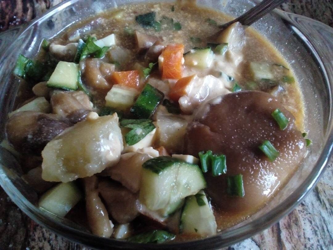 #традиции#Орёл #окрошка Для разнообразия можно и так приготовить Ингредиенты: солёных грибов, кваса, моркови, картофеля, свежих огурцов, Зеленый лук и петрушка, куроп по вкусу, яйцо, сметаны, Горчица по вкусу Способ приготовления: Картофель и морковь помыть, отварить в мундире, охладить, почистить, порезать кубиком Солёные грибы промыть, порезать кубиком Свежие огурцы помыть, порезать кубиком Яйцо отварить, охладить, очистить, разделить на белок и желток Белок порезать кубиком Желток расстереть со сметаной и горчицей Зелень помыть, порубить Окрошку заправить квасом и расстертыми желтками. Приятного аппетита. Буду рада видеть Ваш отзыв и Вас моим подписчиком, если понравился рецепт