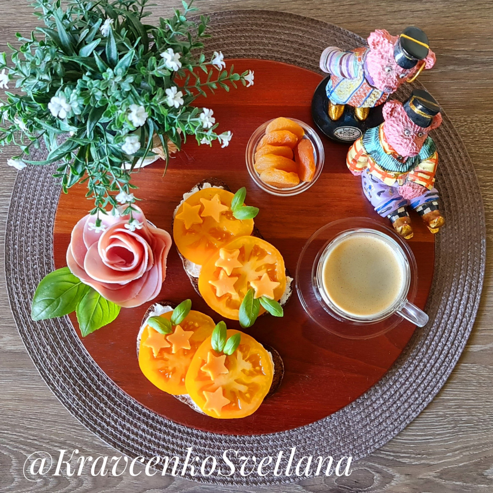 #длядетей #традиции #Даугавпилс Сочетание хлеба и помидора наверное одно из самых удачных. А если красиво подать, то даже дети не останутся равнодушными. За вдохновение спасибо @ella_na_kuhne Ингредиенты: хлеб, творожный сыр или рикотта, помидор, для украшения базилик, для украшения сыр Способ приготовления: Подготовим продукты. Хлеб можно использовать свежий, или подсушить на сковороде - на ваше усмотрение! Хлеб намазать мягким сыром. Томаты порежем кружками и выложим на хлеб. Украшаем звездочками из сыра и базиликом или по вашему вкусу. Приятного аппетита!