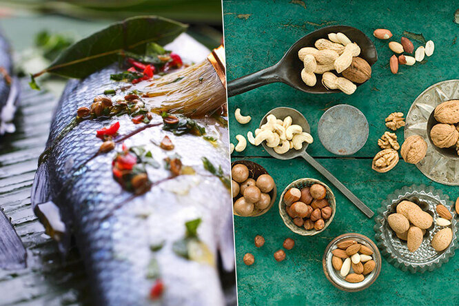 Большинство женщин хочет избавиться от первых признаков старения еще "на подлете". Что мы только ни делаем: ботокс, пластику, покупаем дорогущую косметику... Но и есть и другой способ «отодвинуть» старость и забыть о морщинах еще как минимум на 5-10 лет. например, при помощи этих продуктов. Доказано: грамотно составленный рацион поможет тебе сэкономить на ботоксе! Какой бы диеты ты ни придерживалась, включи в рацион эти продукты: калорий они тебе не прибавят, а состояние кожи улучшат и морщины предотвратят! 1. Рыба и растительные масла Чтобы морщины как можно дольше были для тебя просто страшным словом, в твоем рационе должны присутствовать две самые важные полиненасыщенные жирные кислоты: омега-3 и омега-6. Без них никуда! Хотя бы раз в неделю ешь рыбу — скумбрию, лосось, тунца, сардины или треску. Из продуктов растительного происхождения полезны тыквенные семечки, шпинат и растительные масла, особенно миндальное и льняное. 2. Орехи Коэнзим Q10 и витамин Е – вещества, которые ускоряют