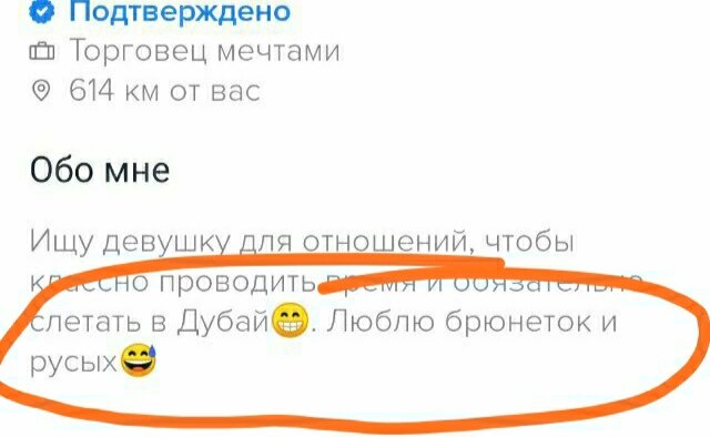 Решилась я всё-таки написать об этом непонятном и новом явлении в тиндере. Почему новом? Я тиндер-старичок 😂 И вот совсем недавно я решила вновь активно ждать свое счастье, смахивая лица вправо и влево😁 И что мне бросилось в глаза? У многих мужчин в профиле появилось описание внешности желаемой девушки, что показалось мне глупым и странным. Ну нравятся тебе голубоглазые блондинки, ну лайкай только их, зачем всем об этом сообщать😅 Но. Ради интереса я лайкнула того, кто ищет миниатюрную брюнетку (я русая и средняя🤣). Матч совпал) Хм. Интересно. Хорошая наживка на женщину с низкой самооценкой. Думаю, эти товарищи лайкают всех подряд, какая им разница, в кого присунуть своего жижулика😂 Посыл такой: /ты особенная, будь ты даже не миниатюрной брюнеткой, я выбрал тебя/. Примеры анкет: Итак, что дальше? Приходит сообщение с приглашением в телеграм. После того, как телеграм заполучен, матч удаляется. В телегу приходит аудио сообщение, Карл! На 2,5 минуты! Я вообще такое отсутствие