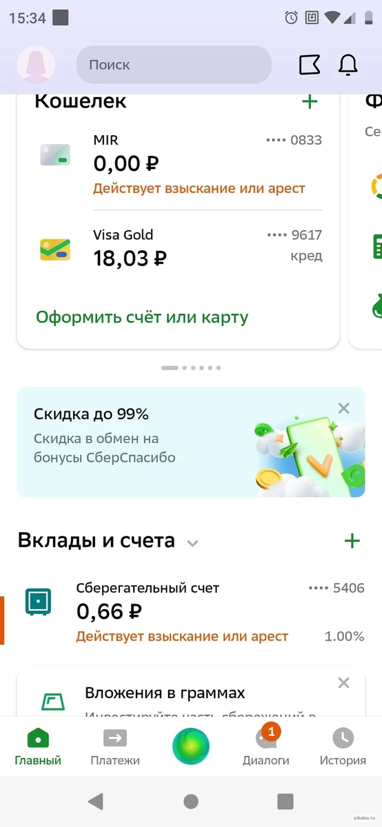 Сбербанк арестовал счета, посчитав, что якобы я не оплатила задолженность. О существовании других банков они не в курсе. И ждём звонка от главного специалиста. По итогу разговора мне объяснили, что арест уже 2 года на моих счетах. На резонный вопрос - а как я спокойно пользовалась картами? Переводила? Платила в магазине? Хранила у вас деньги?
