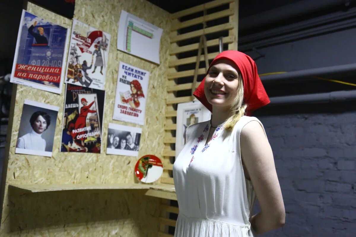 Вернемся к жизни женщин в послереволюционное время. Любопытный аксессуар тех времен – косынка на головах женщин. Ее повязывали на манер современной банданы словно в отрицание платка на головах женщин в царской России, когда их повязывали под подбородком. «Это символ того, что женщины освобождаются, им ничего не мешает, даже волосы. А еще косынку легко снять, и тогда можно увидеть модную в то время прическу – каре», - продолжает гид Карина Ляникова.