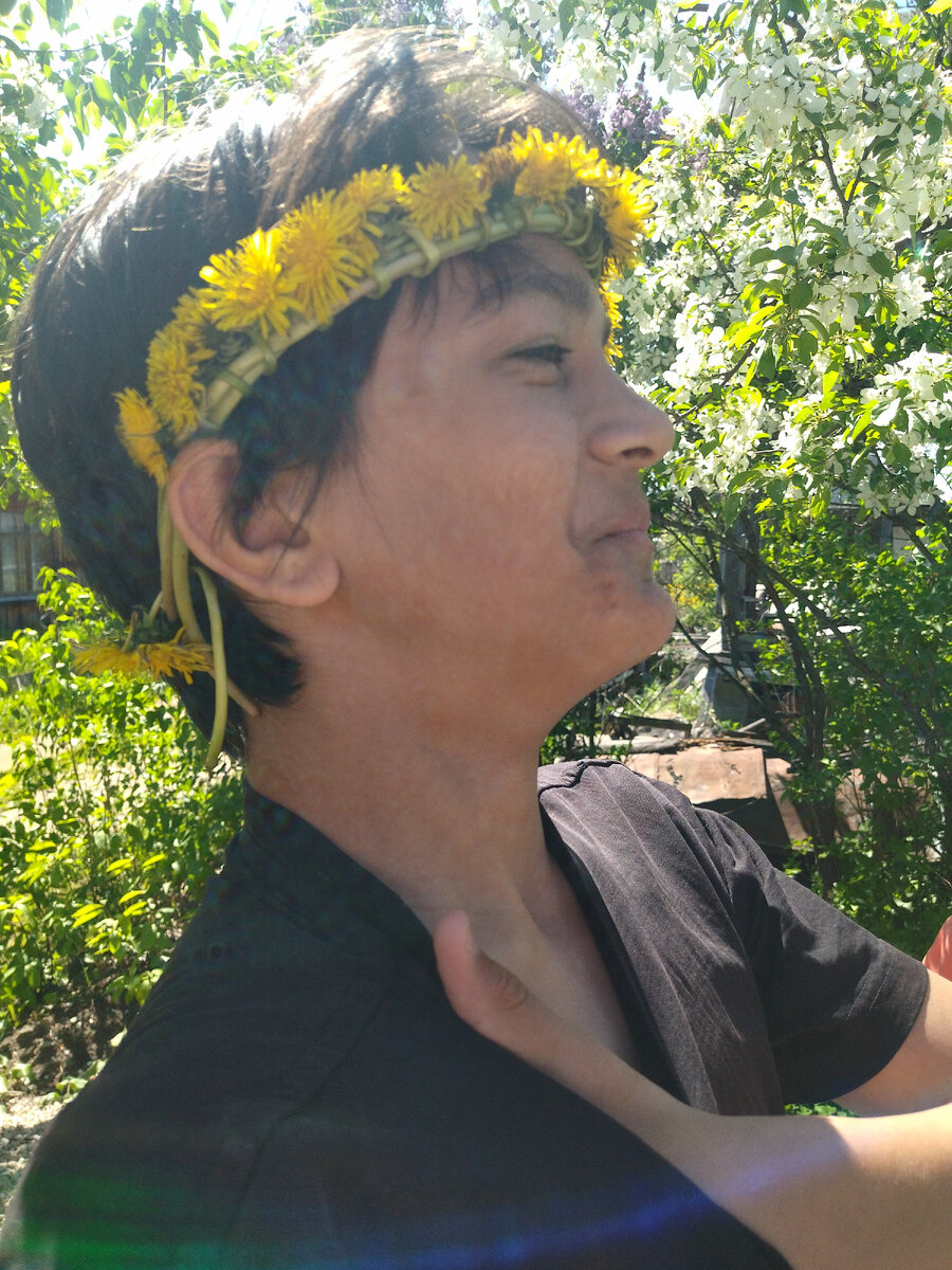 А вы помните как плести венки из одуванчиков? Я, честное слово, очень долго не могла вспомнить. А когда была маленькой то почти всё лето, до определённого возраста разумеется, плела их. Благо материала для этой "природной" поделки вокруг достаточно. Выехали мы на природу. И вроде бы как гуляй "не хочу". Но наши городские дети поначалу засели дома и не желали выходить. К обеду выползли. И тут выяснилось-скучно им. Маленький быстренько занялся машинками, которые ему вынесли. Дочь же начала стонать что ей нечем заняться. А площадка перед крыльцом дома вся была в одуванчиках. Вот ей и дали задание очистить территорию от них. С чем она прекрасно справилась. И вот лежит у нас на столе большой букет из одуванчиков. А мне вспомнились эти венки и браслеты из них. Решила показать дочери, как их плести. Держу в руках, А сама вспомнить не могу. Потом все-таки память сработала и венок начал получаться. А Диана сплела первый в жизни венок. К вечеру у нас у каждого он был.