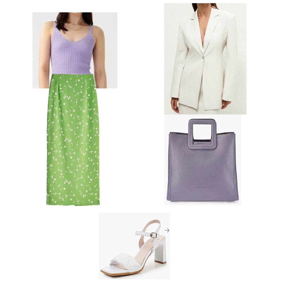 Юбка - карандаш - классическая модель, но не скучная, если выбрать правильный вариант. И у меня для вас три таких юбки и комплекты с ними. Все вещи показаны с ценами, артикулами и ссылками. Комплект 1. Здесь две новинки - юбка из новых поступлений в Лав Репаблик и жакет из лимитки от Зарины. Юбка - настоящее олицетворение лета - травяной зеленый цвет с мелкими цветочками. Ну, и снова я не смогла пройти мимо любимого сочетания зеленого с сиреневым В комплект входят: 1. Юбка - карандаш арт. 2254255219-15 за 3599 РУБ 2. Жакет из вискозы Артикул: 2265272602-2 за 6599 ₽ 3. Топ Befree за 764 ₽ (было 1 299) 4. Сумка Jane's Story за 7 920 ₽ (было 13 200) 5. Босоножки Tervolina за 6 594 ₽ (было 10 990) Комплект 2. Строгость юбки - карандаш сгладим романтичностью блузы с воланами. А еще я не могу перестать любоваться красивым сочетанием голубого с белым Нам нужно: 1. Юбка - карандаш арт. 2153235207-60 за 1599 РУБ (было 3299 РУБ) 2. Джемпер Zolla за 1 429 ₽ (было 1 899 3. Сумка Pazolini за