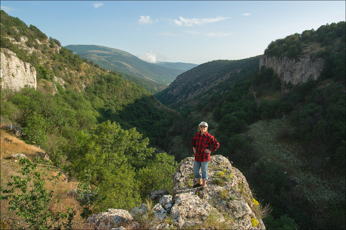 А Лена, поскуливая от восторга, глядела вниз — туда, где простирались извилистые, заросшие пушистыми древесными кронами склоны Узунджи, и в огромное пространство светило уверенно выбравшееся из туч солнышко, играло медовыми оттенками на стенах каньона… И острый, словно нос корабля, каменный мыс выдавался вперёд, в этот простор над каньоном, маня и требуя — выйти, встать на этим зелёно-медовым просторным миром, раскинуть руки навстречу ветру!