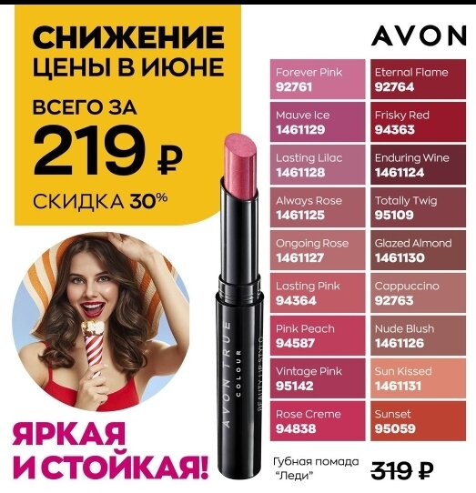 Безупречная помада с мягким сатиновым финишем подарит насыщенный и стойкий цвет. Самая любимая помада от AVON.💋💋💋