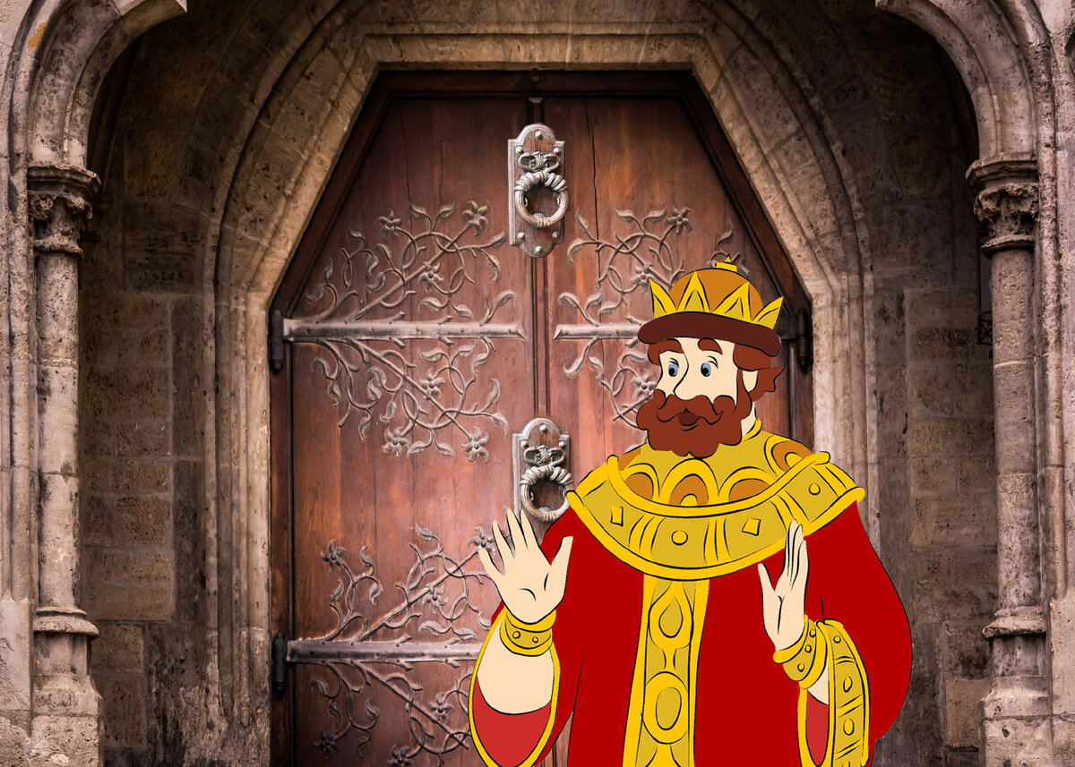 Неожиданно к царю колесом подкатился придворный шут и, склонив колени перед государем, попросил разрешения, попытаться открыть огромную дверь. Опешивший царь, не ожидавший такой дерзости от клоуна, собирался было приказать бросить наглеца в темницу, но, доведенный до отчаянья происходящим, махнул рукой, давая добро.