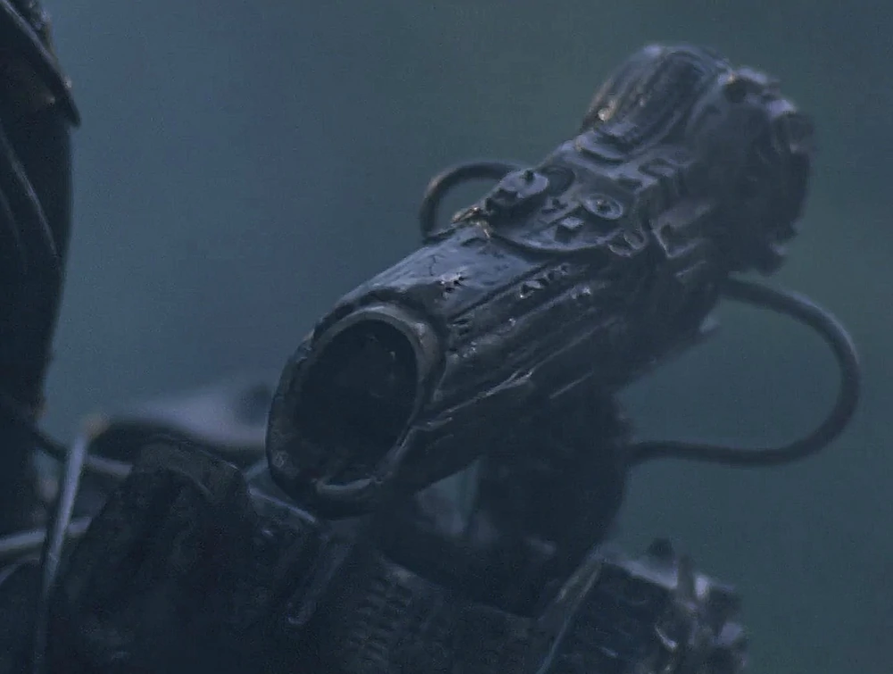 Гарпуны служат метательным оружием, стреляющим металлическими копьями. Как стреляют этими снарядами, неясно, поскольку оружие не производит заметной вспышки и часто почти не производит шума, но стреляет копьями с огромной скоростью и точностью. Независимо от внешнего вида, подводное ружье дальнобойное и очень мощное, способное пригвоздить жертву к твердой поверхности. Напомню так же, в фильме упоминалось, что в состав дротика входят неизвестные на Земле вещества.