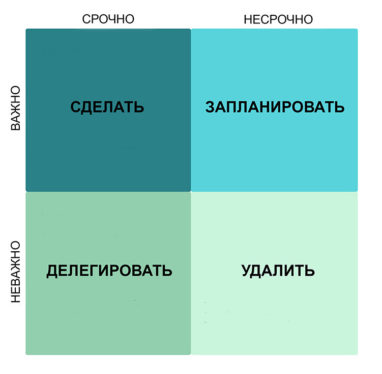 В чем суть? Мы делим все наши планы на день на 4 категории в зависимости от их срочности и важности