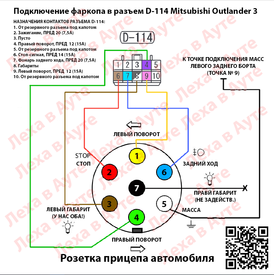 Схема подлючения фаркопа к разъему в багажнике Mitsubishi Outlander 3