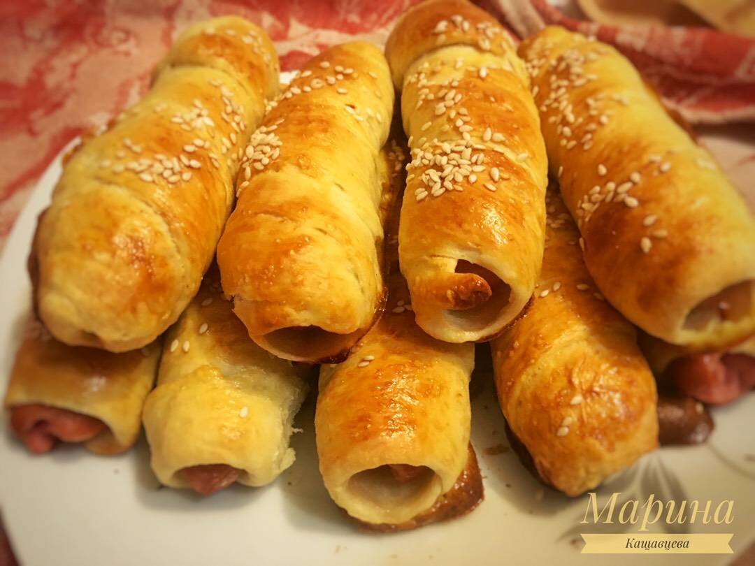#летнееменю Воздушное, мягкое и лёгкое дрожжевое тесто без яиц и молока! Аппетитные сосиски в тесте любят как взрослые, так и дети! Съедаются очень быстро! Ингредиенты: сосисок, воды, муки, сухих дрожжей, сахара, соли, Кунжут для посыпки, яйцо для смазывания Способ приготовления: В просеянную муку добавляем дрожжи, сахар и соль. Перемешиваем. Делаем углубление в центре и вливаем тёплую воду, затем растительное масло. Замешиваем тесто, смазываем его и миску маслом,отправляем для подъема в тёплое место на час. После того, как тесто поднялось. Обминаем его, делим на части. Из каждой формируем шарик, затем раскатываем в длинный жгут и отворачиваем им сосиску. Я же и жгут раскатала в ленту и им заворачивала сосиски. Выкладываем на противень, застеленный пергаментной бумагой сосиски и оставляем на минут 10 на расстойку. Взбиваем яйцо и смазываем сосиски, сверху посыпаем кунжутом. Отправляем в разогретую духовку при 180 градусах на 20-30 минут. Вкусные сосиски готовы! Приятнейшего аппетита 😍