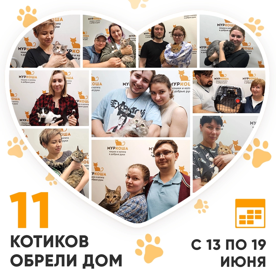 Друзья! Сегодня среда, и мы, как обычно, подводим итоги работы «Муркоши» за прошедшую неделю! Кто же стал счастливым выпускником Adoption центра «Муркоша» с 13 по 19 июня 2022 года? 😺 🥳 Итак, за прошедшую неделю домашними и любимыми стали 11 котиков! 1. Кошка Пролетарка, 2 года Пролетарка дома 🥰 2. Котенок-мальчик Ловелас, 9 месяцев Ловелас дома. 🥰 3. Котенок-девочка Дульсинья, 10 месяцев (кошечка уехала в одну семью к нашей выпускнице Бонаси 🥰) 4. Кошка Василисия, 2 года 5. Котенок-девочка Коричка, 8 месяцев (кошечка уехала к нашим выпускницам Синди и Пихте 🥰) Коричка дома. 😻 6. Кот Шандр, 1.2 года Первый привет из дома: «Вроде всё, как и говорили в приюте: он пока предпочитает быть один в своём домике. Никакой агрессии нет (на руки без проблем идёт, гладить себя даёт), но и пока квартиру особо не исследует. Вчера немного получилось его разыграть удочкой». 😻 7. Кот Луивитон, 2.2 года 8. Кошка Майорка, 3 года 9. Кот Дракоша, 4 года 10. Кошка Микка, 1.7 года У Микки все х