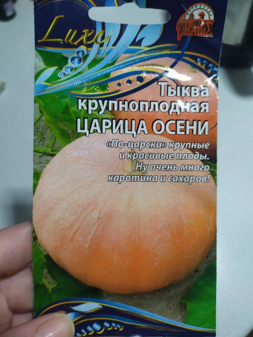 Каждый год покупаю семена овощей от компании Ваше Хозяйство, томатов, огурцов, тыкв и многих других культур. На рынке отечественный производитель уже более 20 лет, и он у многих вызывает доверие и уважение. Вот и я последние годы стала к нему не равнодушна, каждый год хочется, что-нибудь заказать, не только старые проверенные временем сорта, но и новые. В прошлый сезон выращивала сорт тыквы Царица осени. Сорт среднеспелый и урожай крупных плоскоокруглых плодов можно собирать по истечению примерно четырёх месяцев. Он неприхотлив и холодостойкий, прекрасно переносит колебания температуры, а это так важно в нашей средней полосе. Плоды красивые, плоскоокруглые с желтовато - оранжевой мякотью, сладкая, ароматная мякоть прекрасно подходит для приготовления соков, в которой содержится большое количество сахаров и каротина. Кратко рассказать хочу, как подготавливаю семена к посеву и высаживаю их на рассаду. В качестве профилактики грибковых заболеваний замачиваю в слабом растворе марганцовки