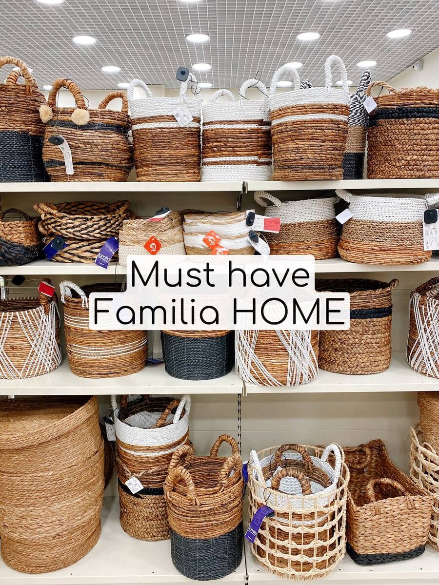 Расскажу про новый магазин Familia home. 🏠 Он находится пока только в одном торговом центре - ТЦ РИВЬЕРА м. Тульская. Сам бутик очень маленький, но не смотря на это выбор товаров для дома обширный. На что я советую обратить внимание: • Корзины для хранения - это самое топовое что там есть. Очень дешево (по сравнению с другими магазинами и маркетплейсами). • Коврики - очень похожие на H&M и Zara HOME. В ванну, прикроватную зону, прихожую - будет очень красиво. Опять же цена супер. Цвета универсальные, под все подойдут. • Зеркала, их много, разных размеров и форм. Мне очень понравились. • Рамочки для фото - от маленьких до больших. Приятные по соотношению цена-качество. • Банки для хранения сыпучих продуктов. Они в основном стеклянные, не дорогие, можно подобрать себе хороший набор. • Посуда так же имеется, но она вся разная, набор подобрать тяжело. И цвета очень мрачные - в основном темно коричневые и синие. • Есть вазы - всех размеров и универсальные, впишутся в интерьер. Магаз