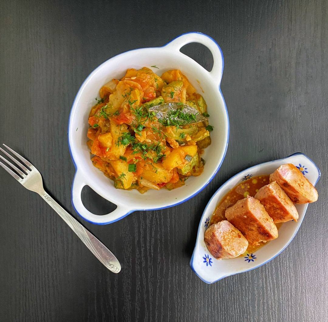 Рагу окремо готується, тому може бути як пісна страва #пісністрави #рагу #салсічі #ковбаски #смаки Ингредиенты: Для рагу :, Картопля, Кабачок, Перець солодкий, Помідор, Цибуля, Часник, Олія для обсмаження овочів, Зелень (цибуля і кріп), Для ковбасок:, Ковбаски (курячі, індичі, шашличні- на ваш вибір)- сирі, Лимон, Олія оливкова, Сіль, приправи за смаком Способ приготовления: Рагу. Очищену і нарізану невеликими кусочками картоплю обсмажити в олії на великому вогні до рум‘яної скоринки в каструлі з товстим дном. Вийняти картоплю а в кастрюлю всипати порізаний кабачок (також середніми кусочками) і обсмажити 5 хв Зменшити вогонь до середнього. До кабачка додати почищений і порізаний перець. Тушкувати 5-7 хв. Сюди ж додати порізані помідори. Тушкувати ще 5 хв Додати дрібно порізані цибулю і часник. Тушкувати ше 5 хв. Повертаємо картоплю. Солимо, додаємо приправи до смаку (в мене « трави до картоплі і копчена паприка) накриваємо кришкою і готуємо до готовності картоплі). Приблизно 15 хв. Тим