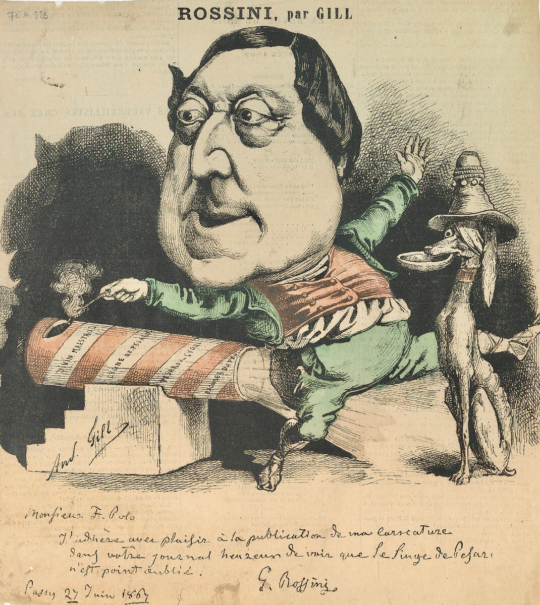 Этот человек, обладавший прекрасным чувством юмора, в свое время обижался на газетные карикатуры. Пока друзья не объяснили ему — такие шаржи рисуют на самых известных людей. Известных, любимых, почитаемых. Так Россини полюбил карикатуры на себя — каждая теперь напоминала ему об успехе и признании таланта. Но со временем он стал бояться того дня, когда появится карикатура, которая расскажет, что он выдохся. Исписался, вышел из моды. Россини ушел ровно тогда, когда понял, что перестает радовать слушателей. Сороковой оперы не будет. Искушение говорило: но Доницетти ведь написал 70 опер за 50 лет... Россини предпочел остановиться на вершине.