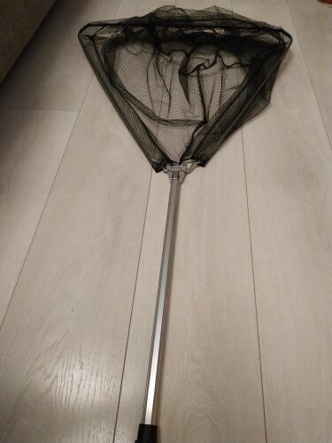 Телескопическая ручка (2 секции) из алюминия,работает хорошо,разбирается и складывается быстро, лёгкий !Материал сетки: капрон с мелкой ячейкой. Надежное металлическое крепление.Единственный минус - нет чехла.