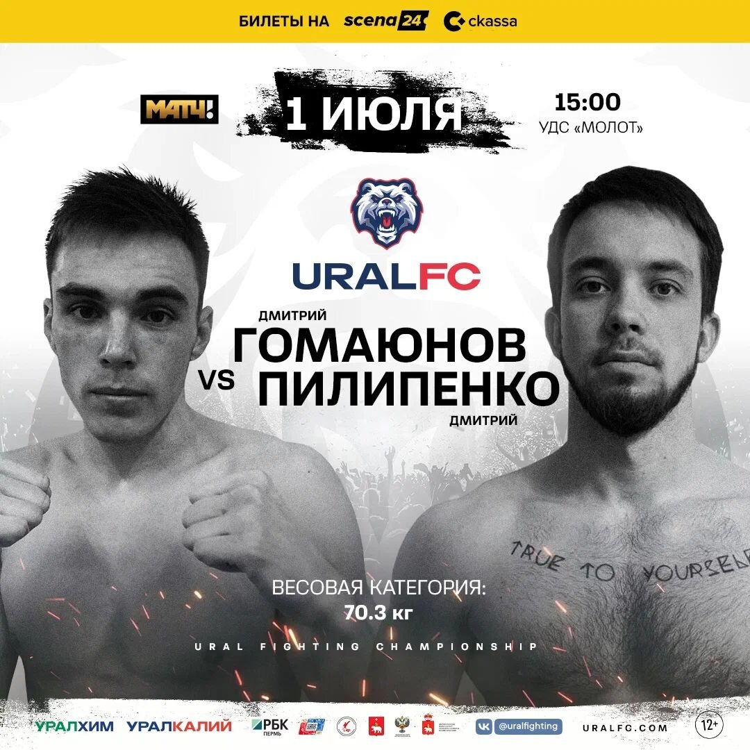 Участники шоу «Претендент» Дмитрий Гомаюнов и Дмитрий Пилипенко 1 июля встретятся на большом событии Ural FC в УДС «Молот».