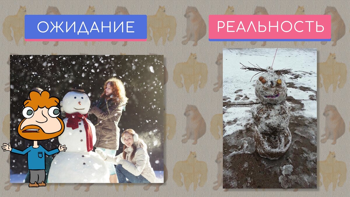 Привет, дорогой друг! Обычно, если на улице хорошая солнечная погода, а на календаре выходные, хорошее настроение появляется само собой. Но это не значит, что дополнительная порция забавных фото будет лишней, так что сегодня я подготовил фотографии, в которых у людей не совпали #ожидание и реальность . Вообще, завышенные #ожидания — это один из самых обидных способов испортить себе настроение. Иногда ты так сильно чего-то ждешь, что фантазия рисует исполнение этого в самых радужных красках. В реальности же все обычно происходит гораздо проще, отчего теряется большая порция удовольствия. Получается, что лучше всего не создавать иллюзий или использовать #юмор если твои воздушные замки уже развеялись. В середине июня немного странно думать о зиме, но все же мы не заметим, как быстро летний зной сменится снежными бурями. Хотя календарная зима — это еще не гарантия белых и пушистых сугробов, не будем забывать, что погода умеет разрушать наши ожидания. Красивое фото на фоне нереального пейз