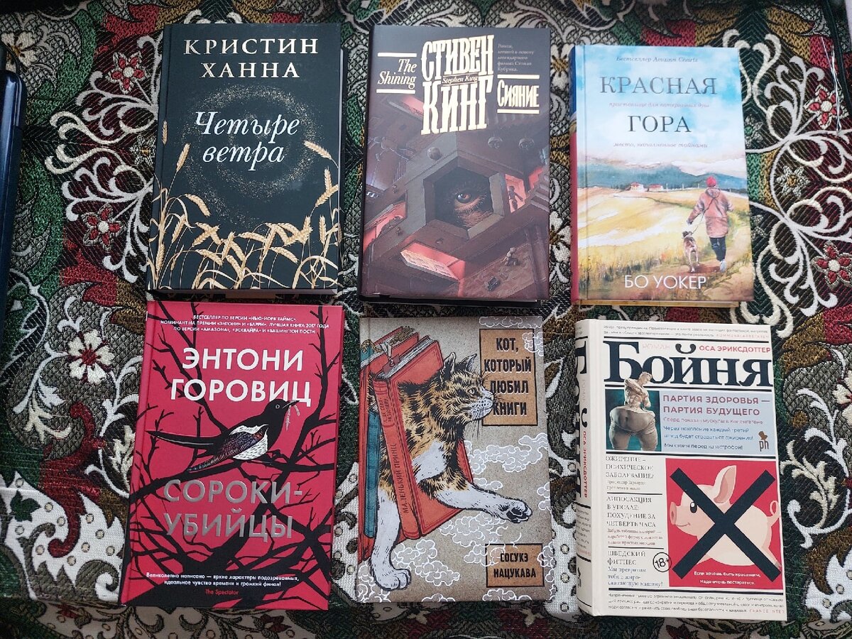 Продолжаю рассказывать о своих книжных покупках в мае. 1. Стивен Кинг "Сияние" Мне нравится Кинг, и постепенно я ознакамливаюсь с его произведениями. Ну и, конечно же, переиздание книг в данной серии просто восхитительно, поэтому их невозможно не купить. Молодой учитель Джек Торранс устраивается на работу в горный отель «Оверлук» сторожем на зиму и к концу осени переезжает туда со своей семьей: женой Венди и пятилетним сыном Денни. Шикарный отель пользуется дурной славой: в нем постоянно происходят странные и жуткие события. 2. Кристин Ханна "Четыре ветра" Для меня произведения Кристин Ханны - это как некий вид мазохизма. Все её романы мне очень тяжело даются морально, но не купить и не прочитать её книги для меня невозможно. Вот и очередное пополнение коллекции. История разворачивается в 1934 году, в Техасе, во времена Великой депрессии. Стоит многолетняя засуха, фермеры пытаются спасти остатки урожая, на людей постоянно обрушиваются пыльные бури. Перед фермерами стоит выбор: остать