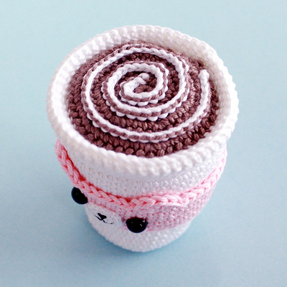 1 часть, как связать стаканчик: https://zen.yandex.ru/media/id/61ec264350898b401888095b/62adeb77613fe1204a8704a1 Условные обозначения: Основа (кофейный цвет или любой другой). По спирали: 1р. — 6 сбн в кольцо амигуруми (6) 2р. — 6 пр (12) 3р. — за з.ст. (пр, 1 сбн) х 6 (18) 4р. — (пр, 2 сбн) х 6 (24) 5р. — за з.ст. (пр, 3 сбн) х 6 (30) 6р. — (пр, 4 сбн) х 6 (36) 7р. — за з.ст. (пр, 5 сбн) х 6 (42) 8р. — 1 сбн, завершить сс, оставить длинный конец для сшивания. Спираль: Присоединить ко 2 полупетле 3 ряда нить желаемого цвета и вязать по спирали за оставшиеся передние стенки сс. Завершить сс, спрятать кончики нитей. СБОРКА: Укрепите дно стаканчика кругом из картона и набейте деталь, придавая руками нужную форму. Оставшейся нитью от кофе пришейте напиток к стаканчику (у кофе 42 петли, у стаканчика - 54, поэтому при сшивании пропускайте каждую 4 петлю на стакане). Загните край, наденьте держатель - готово! ^__^ Больше мастер-классов ищите на сайте: https://www.amyliefreeman.com/СКИДКА 10%