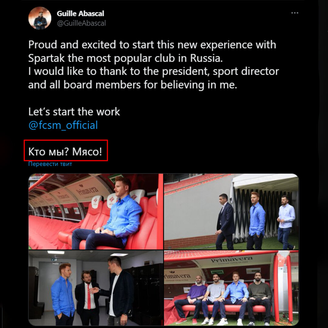 «Кто мы? Мясо!» Главный тренер «Спартака» Абаскаль обратился к болельщикам на русском языке.