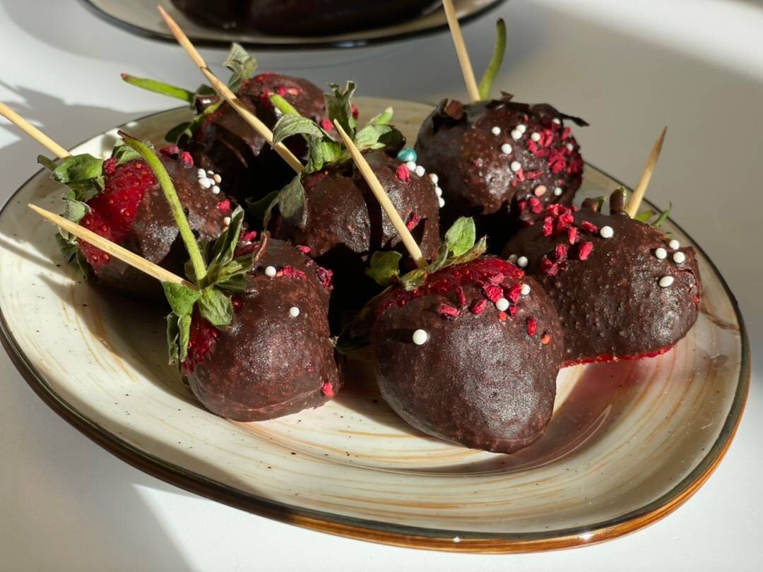 Для всех сладкоежек🤩 По кол-ву ингредиентов скажу так: сколько совесть позволит делайте)))) #летнееменю #клубника #ягоды Ингредиенты: Клубника, Банан, Шоколад горький (победа без сахара) Способ приготовления: Ягоды клубники моем, сушим на салфетках/бумажных полотенцах. Банан очищаем, режем на 3 части. Шоколад топим в микроволновке импульсами по 10-15 секунд, каждый раз достаём и тщательно перемешиваем. Нанизываем клубнику и бананы на палочки для Эскимо/зубочистки/шпажки. Опускаем в шоколад. Лишнему даём стечь. Убираем на 20-30 минут в холодильник. Приятного аппетита ❤️
