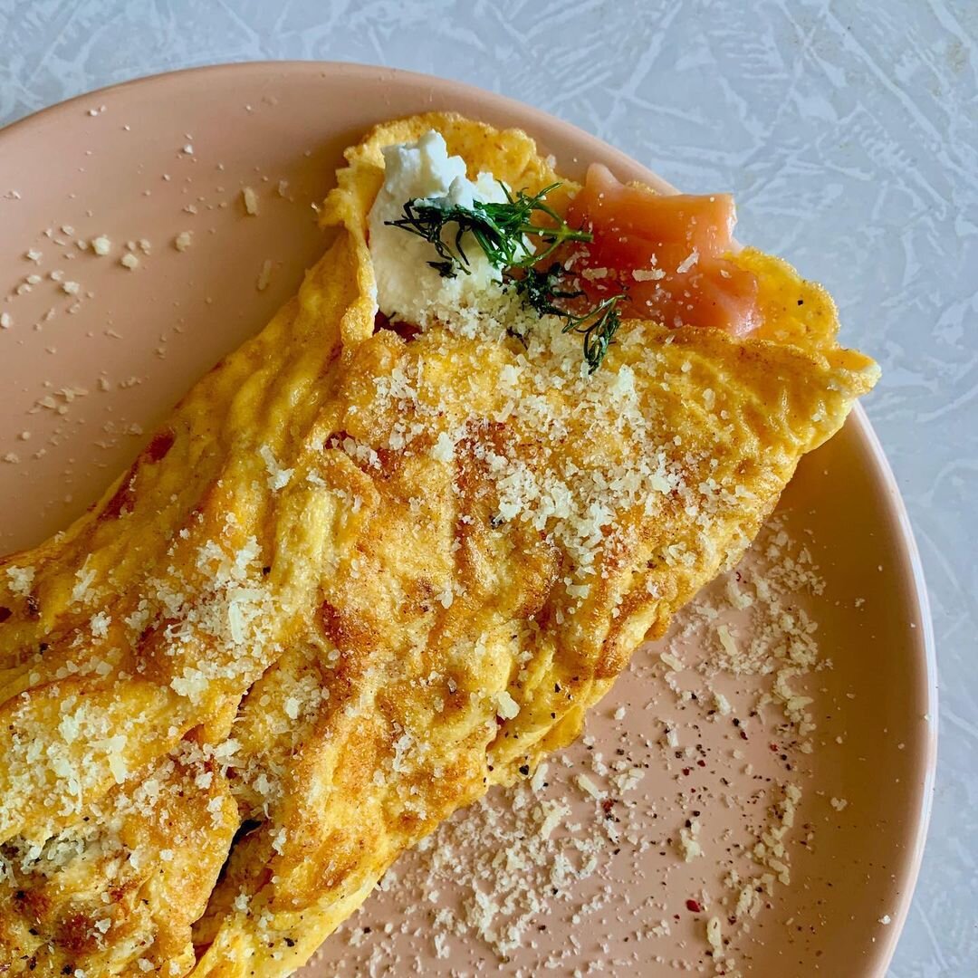 За что мы ценим омлет? за быстроту приготовления ии.. за его воздушность и нежность. Используйте этот рецепт и ваши омлеты будут всегда на высоте! Способ приготовления 1. Для одного омлета разбейте в миску 3 свежих яйца, добавьте чайную ложку водки и черного перца на кончике ножа. Перемешайте. Не слишком усердствуйте. Нужно просто соединить желток с белком. Да-да, водки! Не волнуйтесь, водки там - гомеопатическая доза, при сильном огне она исчезнет без следа, а благодаря испарениям алкоголя, омлет получится очень нежным. 2. На сковороде растопите ложку сливочного масла, и как только начнёт шипеть, выливайте туда яйца. Огонь должен быть почти самый сильный. 3. Когда омлет схватиться по краям, но в серединке ещё будет таким хлипким, выложите на него пару ломтиков солёной рыбы и пару ложек сливочного сыра, а сверху укроп. 4. Заверните омлет с двух сторон, как конверт и сразу снимите с огня. Приятного аппетита!