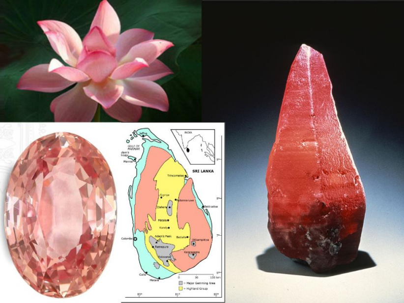 В переводе с сингальского «сапфир Падпараджа» — это цветок лотоса, воплощенный в камне. Минералы, которые будто впитали в себя лучи заходящего солнца, уникальны и достаточно ценны. Для таких сапфиров характерны розовато-оранжевые оттенки. Их родиной считается Цейлон (Шри-Ланка), а масса редко превышает 2 карата. Происхождение минерала