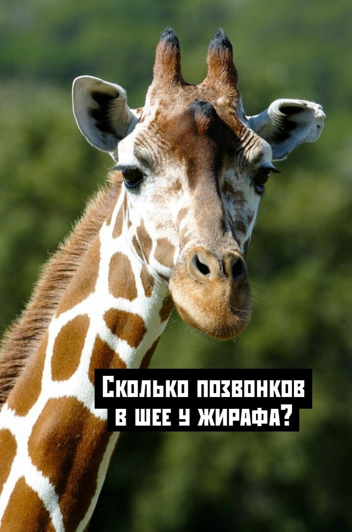 Друзья, вы когда-нибудь задумывались о том, сколько позвонков в шее у жирафа? Возможно, этот факт вам неособо пригодиться в жизни (зависит от того, как и где вы будете его применять), но поверьте, от этого он не становится менее интересным. Жираф для нас - это такое сильное и могучее животное с длинной шеей. И вроде бы: шея этого животного такая длинная, наверное, там придостаточно позвонков, что совсем несравнимо с человеческой шеей. А вот и нет! Шея у жирафа, может, и длинная, но позвонков там небольше, чем в шее человеке - 7. Равное количество, как и у всех млекопитающих, представляете? Еще немного информации об этом животном: Большой рост увеличивает нагрузку на систему кровообращения, прежде всего в отношении кровоснабжения головного мозга. Поэтому сердце у жирафов особенно сильное. Оно пропускает 60 л крови в минуту, весит 12 кг и создаёт давление, которое в три раза выше, чем у человека. (Ну хоть в чем-то жираф нас обогнал :) ) Если вы больше хотите подобного интересного контент