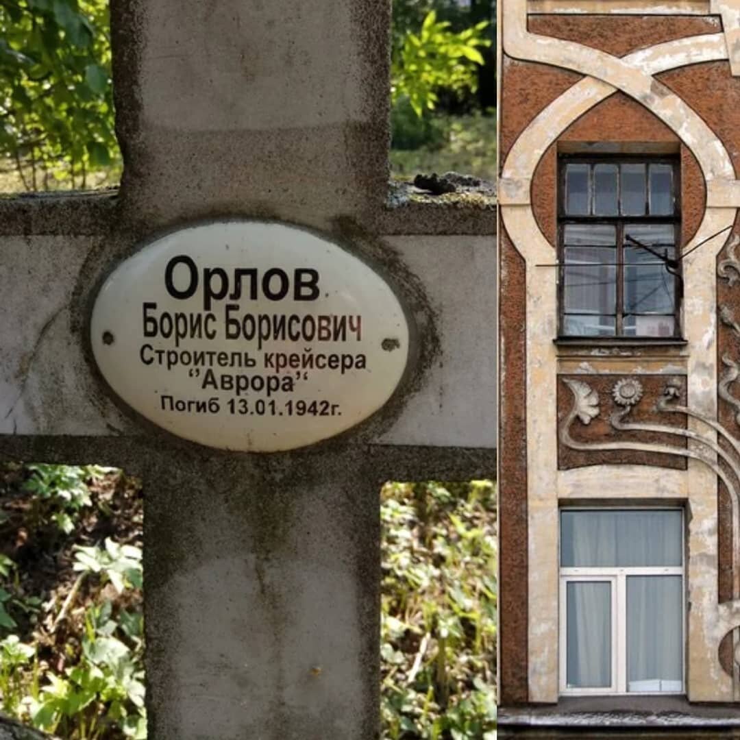 Строитель крейсера "Аврора" Орлов Борис Борисович (1869-1942). Умер в блокаду. Блокадныйадрес про строителя крейсера Аврора Орлова Бориса Борисовича и дом, где он жил. Он похоронен на Смоленском кладбище. На его кресте только дата смерти и надпись: "строитель Крейсера "Аврора". В базе написано вот что: Орлов Борис Борисович, 1869 г. р. Место проживания: наб. р. Пряжки, д. 34-б, кв. 30. Дата смерти: январь 1942. Место захоронения: неизвестно. (Блокада, т. 22) 73 года. Почему написано, что Борис Борисович погиб - неизвестно. Может, он стал жертвой бомбежки или артобстрела или погиб - от голода. Строительство крейсера «Аврора» началось 4 июня 1897 года в Санкт-Петербурге на судостроительной верфи Новое адмиралтейство. Строили его множество специалистов: и судостротелей, и оружейников. Списка я не нашла. Крейсер «Аврора» был спущен на воду в мае 1900 года (фото спуска в ленте), а в июле 1903 года вступил в строй боевых кораблей флота России. В период русско-японской войны корабль при