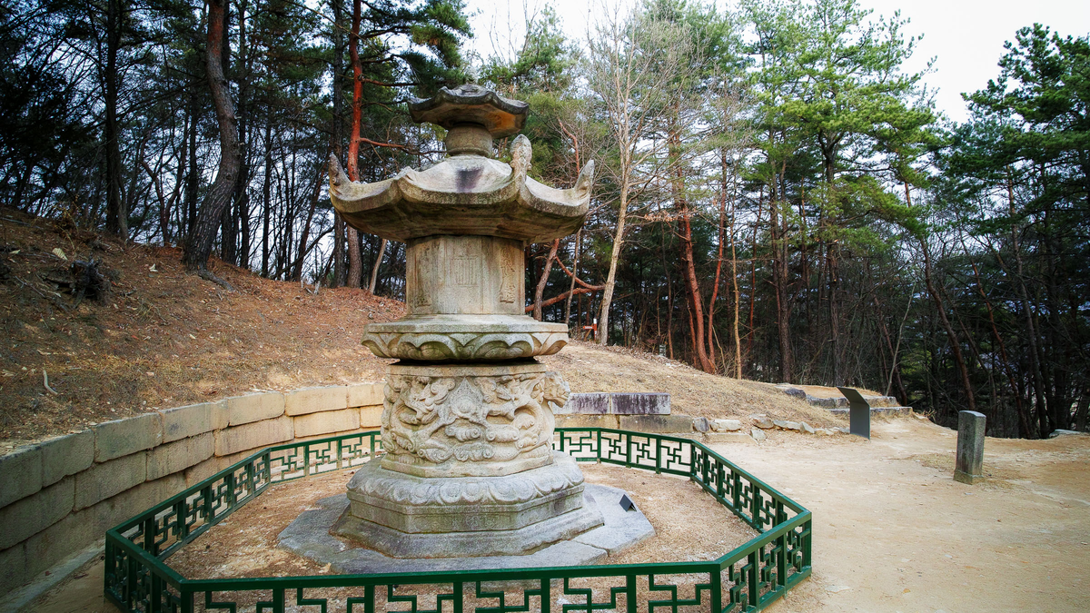 Каменная пагода-ступа монастыря Кодальса (고달사지승탑) около города Ёчжу ( 여주) считается построенной в 975 году. В основе она повторяет формы каменных фонарей периода Шилла, сооружавшихся около буддийских храмов. На ее низком двухступенчатом основании, украшенном лепестками лотоса, возвышается массивный круглый столб, играющий роль пьедестала. Вся его поверхность декорирована сложной горельефной композицией в виде клубящихся облаков и драконов. Столб заканчивается в верхней части украшенным лепестками лотоса выступом, который служит основанием для верхнего восьмигранного столба в форме фонаря, увенчанного массивной нависающей восьмиугольной крышей с поднятыми по углам выступами с акротериями - анхва (перевернутый цветок). Вершина выглядит как невысокая урна с выступающими углами. #korea #корея #история кореи #история #национальное сокровище #пагода