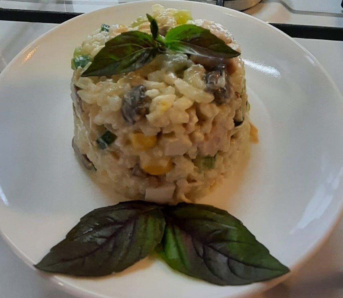 Салат "Зодиак" получается очень красочным, ярким, а главное очень вкусным. Такой салатик украсит любой стол. Все ингредиенты блюда идеально сочетаются друг с другом: огурец привносит сочность и свежесть, жареные грибы - аромат, отварные куриные яйца и филе дарят сытность, а консервированная кукуруза - цвет и легкую сладость. Продукты: Сначала промываем и отвариваем рис, полстакана сухого, длиннозерного. Пока рис варится, пожарим грибы с луком. Грибы шампиньоны тщательно промываем под проточной водой, даем воде стечь. Разрезаем каждый гриб пополам, затем каждую половинку - пластинками. Начинаем обжаривать грибы на растительном масле. Сначала грибы выпускают сок. Когда сок выпарится, добавляем к грибам мелко нарезанный лук. Обжариваем до золотистого цвета. Благодаря такому не хитрому приему лук с грибами получаются именно жареными и очень вкусными. Если начать обжаривать сначала лук, то он будет вариться в грибном соке, а не жарится.