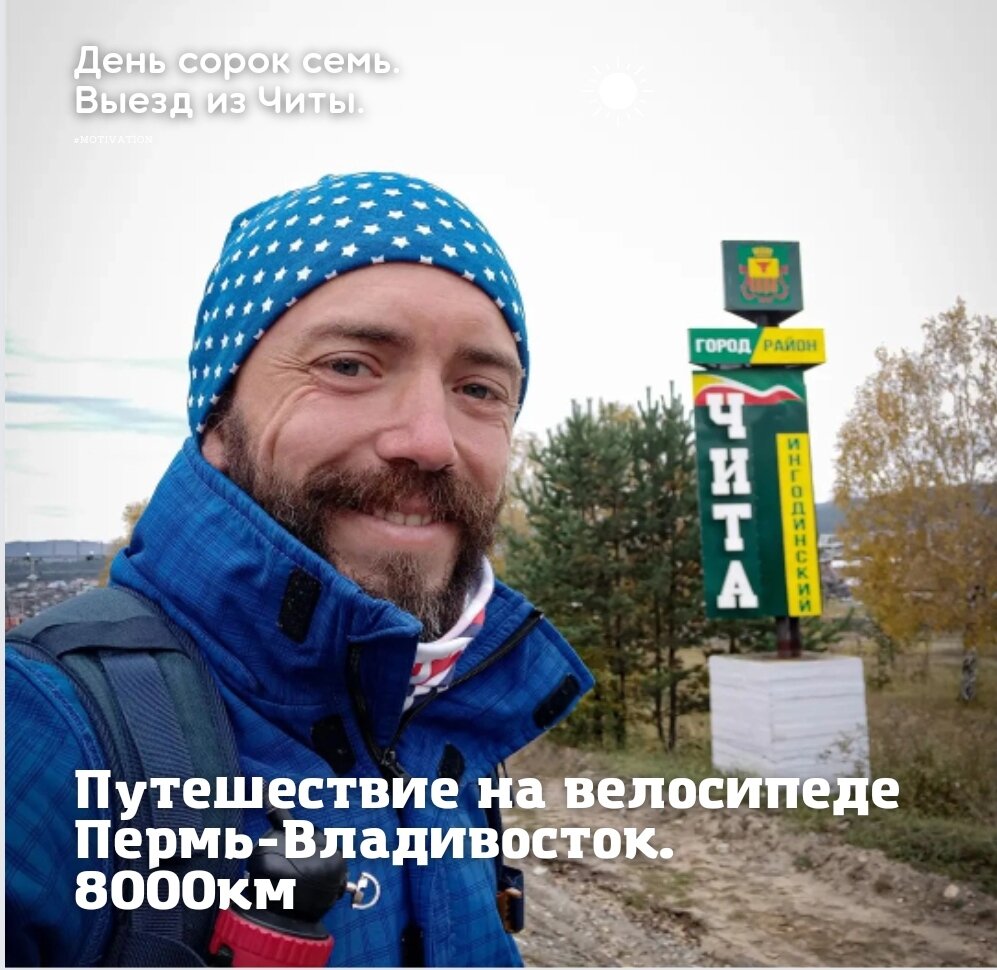 Оля приготовила завтрак и решила проводить меня до выезда из города, заодно совместив это со своей утренней пробежкой. Я поленился спустить по отдельности велик и сумки, и спускал своего бараша с третьего этажа уже навьюченым за что поплатился дикой судорогой в правом бедре. Такой мышечной боли я не испытывал ещё ни разу, когда спазм прошёл было ощущение, что в бедро воткнут нож. Сгибать ногу было просто невыносимо. Пришлось потратить время чтоб хорошенько промять мышцу. Дальше через боль тихонько ковылял за Ольгой, понемногу отпускало. Через дворы и утренний сосновый лес вышли на большую дорогу. Ритуал прощания, теплые пожелания и я еду дальше, а Оля бежит домой. Благодарю тебя, Ольга, за тёплый приём 🙌🙏🤗 Я ещё какое-то время топчусь по объездной, а потом ныряю в заветный отворот на трассу Чита-Хабаровск, которая встречает меня семи километровым подъёмом. Но он с лихвой окупился длительными спусками короткими подъёмами, которые берутся накатом и снова спусками. Давно хотел на