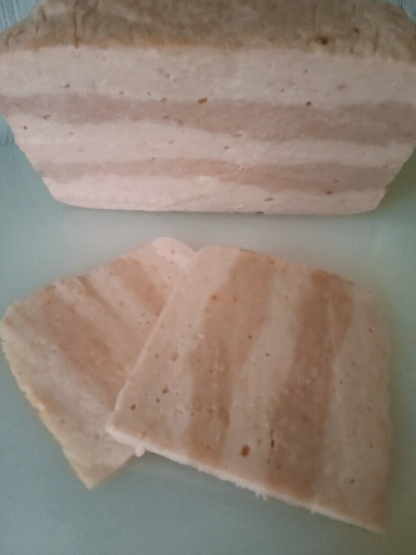 Форму для выпечки выстелили целлюлозной плёнкой и послойно выложили обе мясные массы.Удобно разравнивать мокрой рукой,фарш не липнет к руке.Завернули пленку