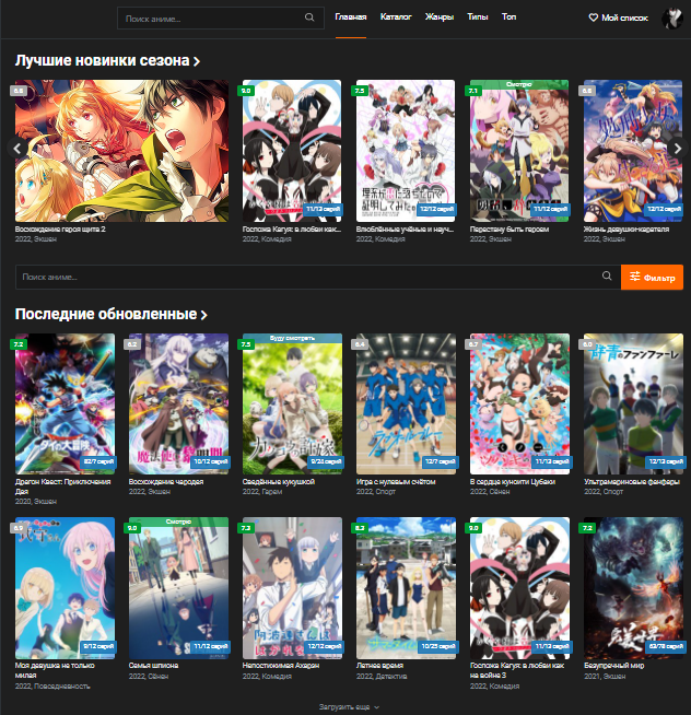 Давайте же приступлю к знакомству вас с ним. Вот так выглядит главная страница сайта: Благодаря "боковому меню", вы сможете взаимодействовать с вашим профилем, уведомлениями (выходе серии, аниме), сообщениями, магазином очков (разные плюшки), премиум аккаунт, история просмотра (страницу какого аниме вы посещали), настройками и выходом из аккаунта. Давайте для начала пожалуй покажу вам оформление странице к аниме. Страница к аниме выполнена и оформлена красиво, нету лишних элементов. Огромный выбор селектора озвучек, запоминание просмотренной серии, порядок просмотра (поможет определиться с какого тайтла начинать просмотр). Давайте теперь перейдём к боковому меню. ПРОФИЛЬ Он очень комфортно оформлен, мне нравится. УВЕДОМЛЕНИЯ СООБЩЕНИЯ Так же сайт заботится о комфорте зрителей, и поощряет их за активность. У меня 18 июня прошло ден