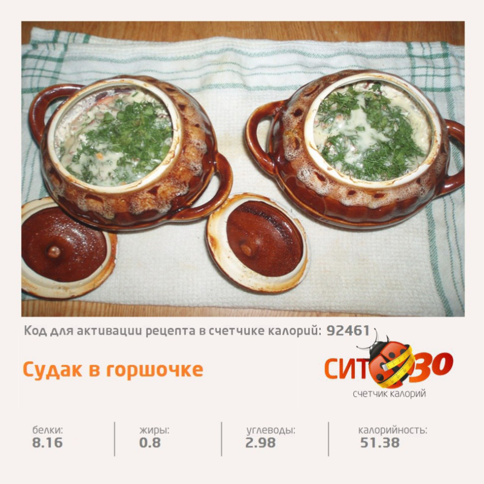 Аромат этого блюда заставит даже самого требовательного едока пустить слюньки, но а готовится оно очень просто Ингредиенты: • судак — 2 шт.; • цветная капуста — 200 г; • кабачок — 1 шт.; • морковь — 1 шт.; • нежирный кефир — 0,5 л. Приготовление: 1. Разделать рыбу, отрезав голову, плавники и хвост, распотрошить и хорошо промыть. Положить на дно горшочка, нарезав небольшими кусочками. 2. На рыбу выложить цветную капусту. 3. Морковь (соломкой) и кабачок (средними кусочками) – 3-ий слой. 4. Посолить и поперчить по вкусу, залить кефиром (1,5 см до края). 5. Поставить в духовку (разогреть до 180С) на 1,5 часа. Следить за вашим рационом питания поможет наш «Счетчик калорий СИТ30»: https://play.google.com/store/apps/details?id=net.sit.. Меню правильного питания на 30 дней можно найти в нашем мобильном приложении «Похудение с СИТ 30»: https://play.google.com/store/apps/details?id=com.sit..