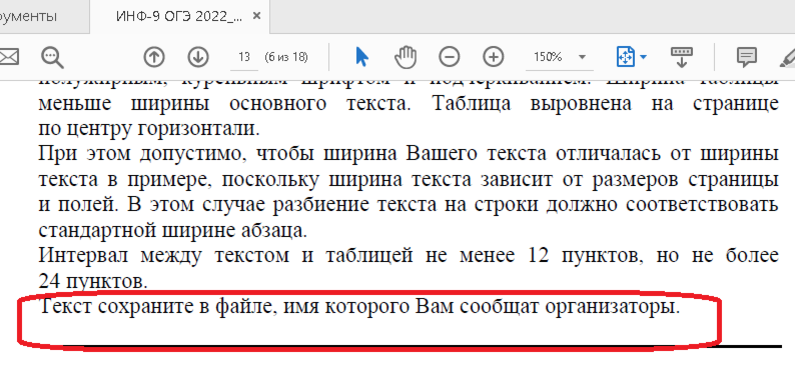 ОГЭ по информатике. Самый доступный для сдачи экзамен (кроме пожалуй географии) Отличительная особенность этого экзамена в небольшом количестве заданий (15) и проходном балле. Всего надо набрать 5 баллов и ты сдал на "три" Но это же ОГЭ, как бы централизованный экзамен. А в успешности проведения таких экзаменов большую роль играют самые на первый взгляд небольшие нюансы. И вот такой нюансик и оказался определяющим в этом году. Всё дело в практической работе. Всего их пять. Но в трёх их них выпускник должен что-то сделать. Например задание 13.2. Набрать текст по образцу. Обратите внимание на подчёркнутое красным цветом Задание 14, электронные таблицы. И наконец задание 15.1 Эти три задания взяты из демоверсии ФИПИ. Везде идёт отсыл к всемогущим организаторам, которые должны всё объяснить детям как сохранять. Раньше были разные схемы сохранения: вот такая например: или вот такая схема сохранения Как должны были сохранять дети в этом году не знал никто. Учителя понятия не имели куда сохр
