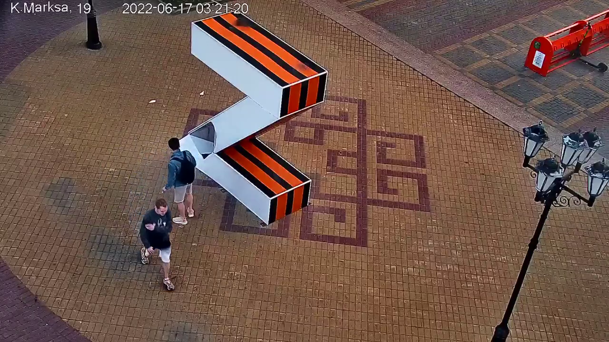 17 июня двое молодых людей проходили мимо инсталляции в виде буквы Z. Парням что-то не понравилось , они решили ,что такой конструкции не место на площади. Уже утром виновных нашли и доставили в отделение полиции. В региональном управлении МВД сообщили о том, что парням грозит до трёх лет лишения свободы, а так же штраф в размере 30 тыс. рублей. На время расследования уголовного дела фигурантам избрана мера процессуального принуждения в виде обязательства о явке. Уже после нарушители принесли свои извинения за содеянное. Ссылка на видео с извинениями. Как говорится "Слабоумие и отвага".