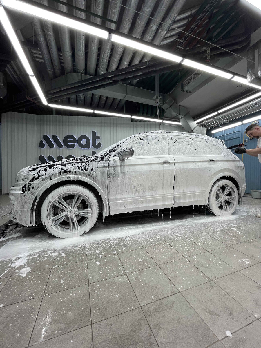 Активные пены для бесконтактных моек. Их великое множество, от самых дешевых, с жесточайшим химозным запахом, до самых дорогих, с ароматом парфюма, и нежнейшей пеной. Тут я бы обращал внимание на Ph состава. Чем он больше, тем активнее смывает всё, что есть на кузове, включая воски, и синтетические полимеры. Понятно, что в пене так же присутствуют ПАВы (Поверхностно Активные Вещества), и просто смотреть на щелочность неправильно, но надо же с чего-то начать знакомство с составами. Кстати, в американских школах детейлинга, чаще всего нет такого понятия, как бесконтактный шампунь, как и лютых реагентов, которые есть в России )