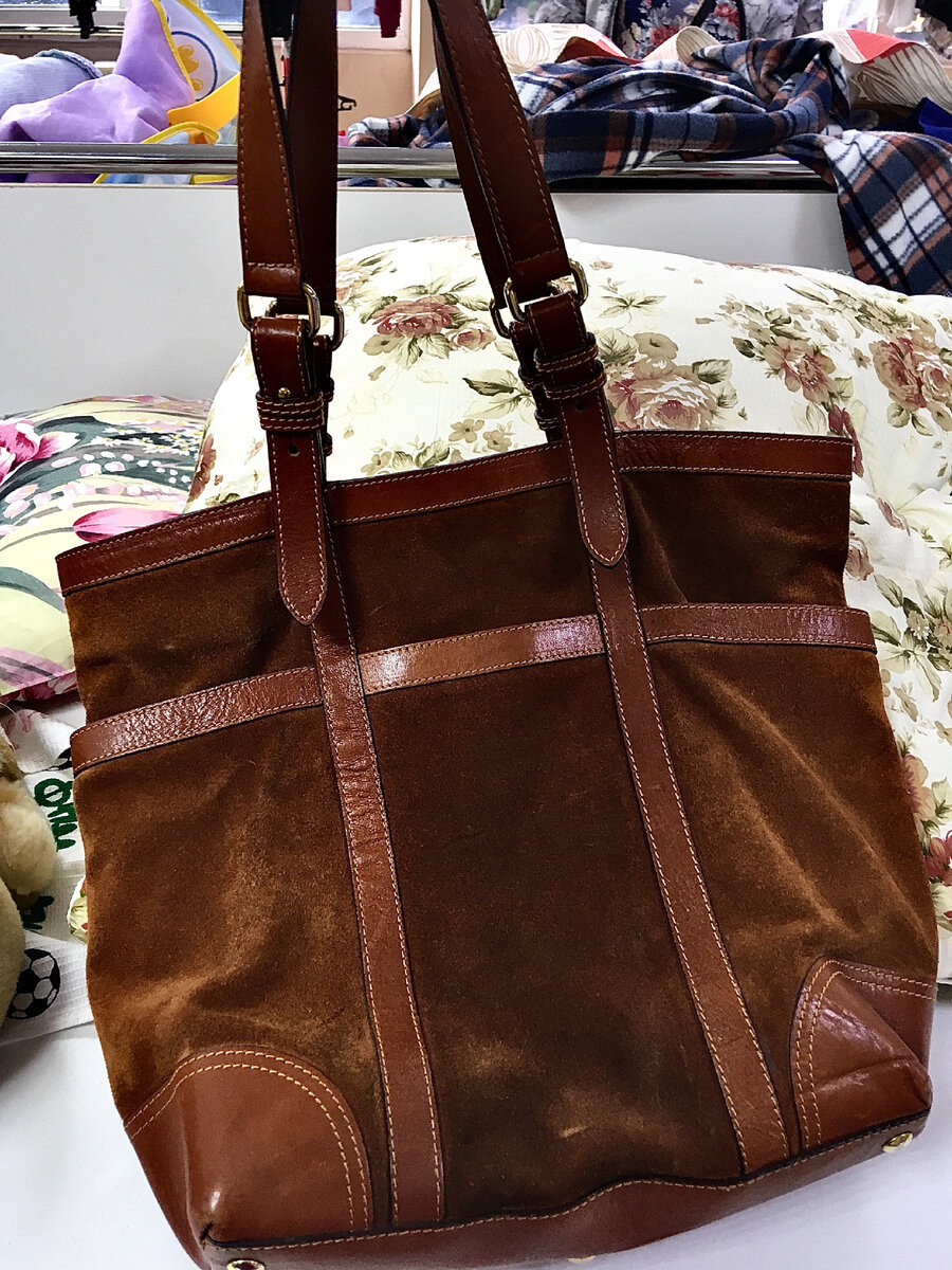 Сумка от Мassuming Dutti за 2250р из коричневой замши с элементами из кожи ( ручки, уголки сумки), была бы идеально новой, может и нормальная цена, но износ есть. Сумка большая и вместительная, ручки длинные, удобные для ношения на плече.