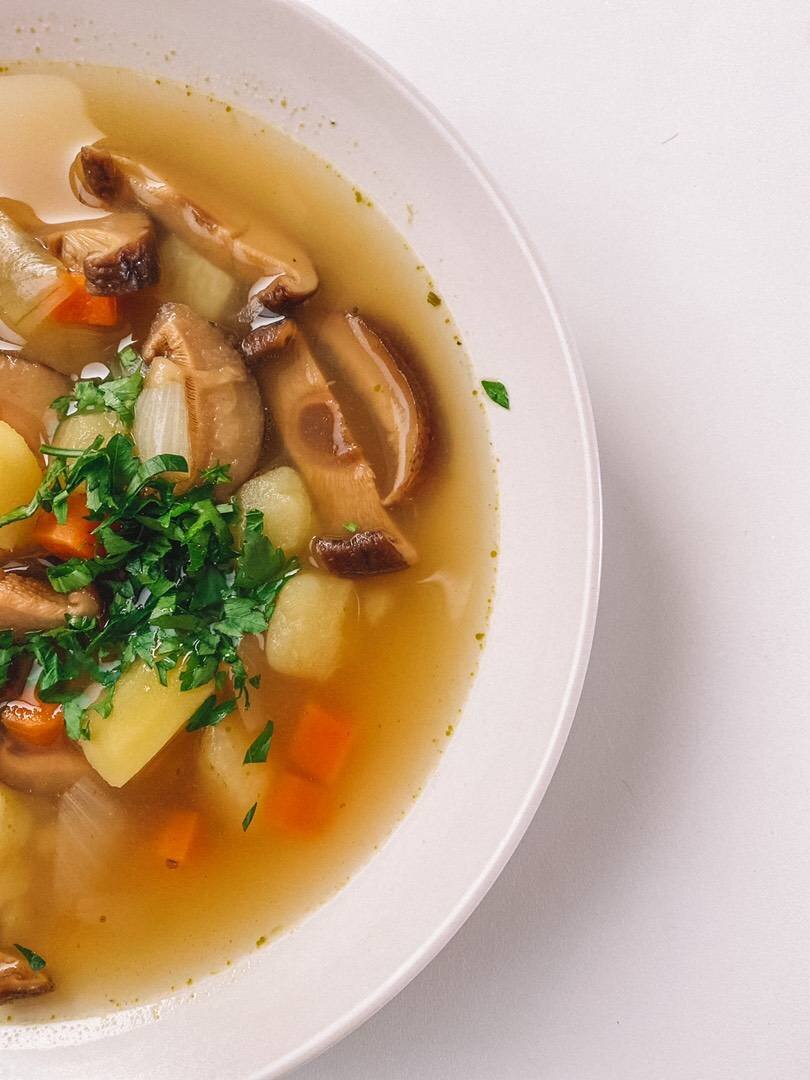 Шиитаке – древесные грибы, которые растут на дереве шии. Они обладают изысканным вкусом и целебными свойствами. Гриб шиитаке содержит витамины (А, D, С, группы В), полезные микроэлементы, аминокислоты, жирные кислоты и полисахариды. #шиитаке #грибы #суп Ингредиенты: грибы шиитаке, морковь, картофель, репчатый лук, соль, перец, петрушка для сервировки Способ приготовления: Если у вас сухие шиитаке, то замочите их в кипятке перед приготовлением примерно на 3 часа. После этого процедите получившийся грибной бульон и используйте его при приготовлении супа. Нарезать овощи небольшими кубиками. У грибов удалить ножки и нарезать только шляпки полосками. Выложить овощи в грибной бульон (если бульона от замачивания грибов немного, то просто разбавьте его водой). Как только вода закипит, убавить огонь до среднего и прикрыть крышкой. Варить суп примерно 20-30 минут. При подаче посыпать измельчённой петрушкой. ПРИЯТНОГО АППЕТИТА! 😋