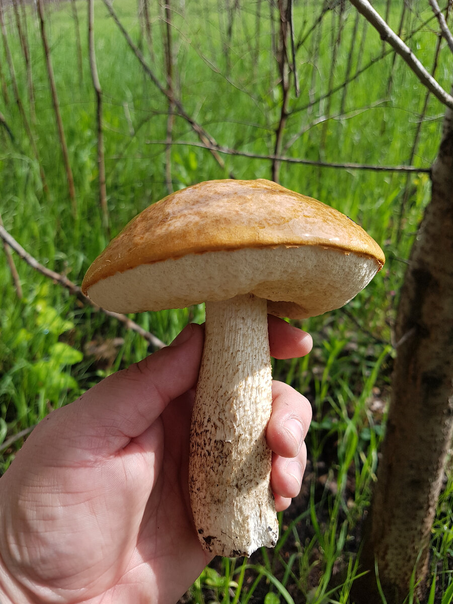 Походил на выходных по лесу, нашел два подосиновика. Грибной сезон открыт. Оба гриба были без червей, поэтому после нарезки получилось граммов 200 грибной массы Итак, нам понадобятся - нарезанные подосиновики - картошка, порезанная "по деревенски", ну т.е. дольками - головка репчатого лука, порезанная мелкими кусочками - растительное масло - можно граммов 30 сливочного масла для аромата и нажористости. А можно и не добавлять - дело вкуса - соль Для начала разогреваем в сковороде растительное масло. Как нагреется - добавляем грибы Обжариваем до тех пор, пока из них не выпарится вода Нагрев максимальный. Добавляем картошку и перемешиваем Поджариваем и добавляем лук Перемешиваем и снова подрумяниваем картошку. Я добавлю сливочного масла Снова обжариваем Когда картошка подрумянится, нагрев уменьшаем, закрываем крышкой и подтушиваем до готовности минут 10 После этого нагрев выключаем и даём постоять минут 10, чтобы протомилась. Так будет ещё вкуснее. После этого можно накладывать и кушат